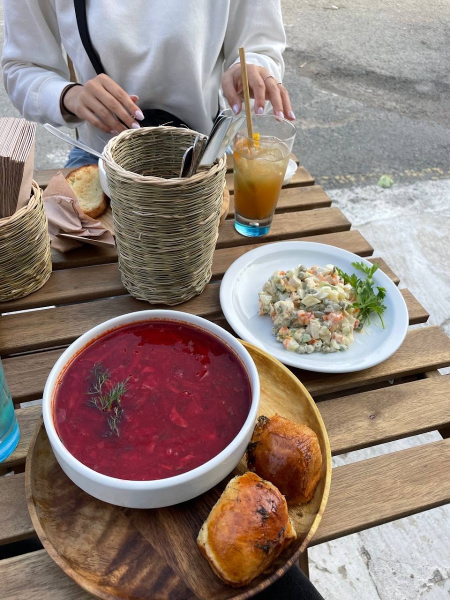 This lovely cafe serves yummy dishes including Russian salad, Borsh, Kiev cutlets, stews and many more. I enjoyed vegan Borsh and zucchini patties. It must be booked during the weekend as it gets crazily busy. I highly recommend Eda cafe!